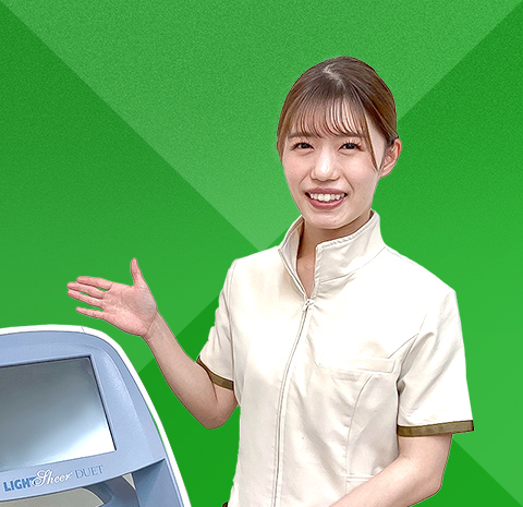 当院では、効果を実感しやすい高出力の医療脱毛レーザーを使用し、気になるムダ毛にピンポイントでアプローチしていきます。厚生労働省の薬事承認を受けた「Light Sheer Duet(ライトシェアデュエット)」を導入し、肌質や毛質に合わせた施術をご提供いたします。安定した効果をご実感いただくために、毎回同じ機器で施術を行い、理想の肌へと導きます。