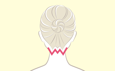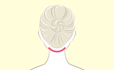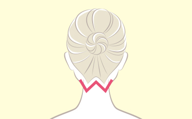 日本人に多くみられるデザインで、うなじの形を活かすことができます。自然で大人っぽい印象の後ろ姿に仕上がり、首を長く見せることが可能です。