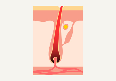 皮膚表面から確認できる部分のこと。一般的に「体毛」として認識されている場所です。毛幹だけを除去しても、発毛組織は破壊されず再び毛が生えます。