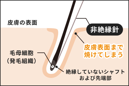 ※絶縁針の記載がない針脱毛は皮膚表面に通電しますのでご注意ください