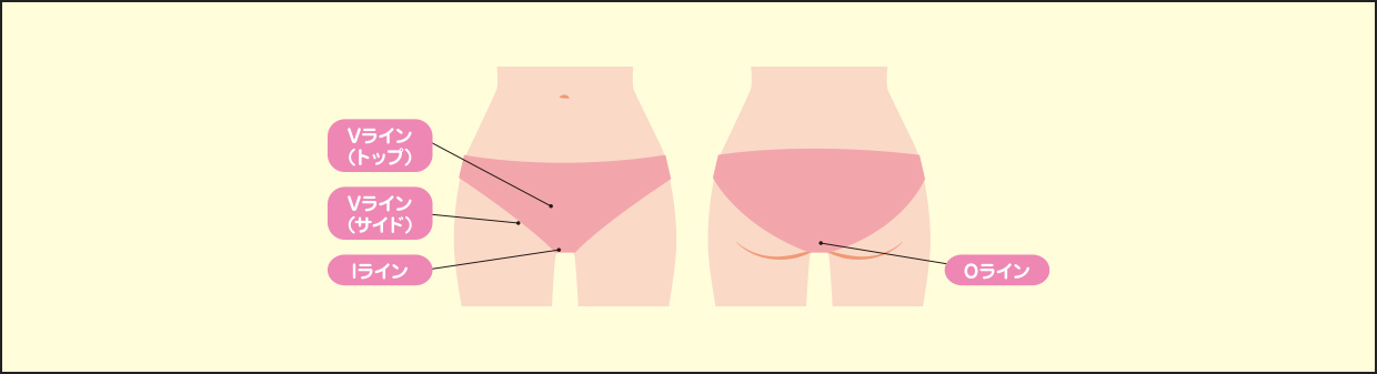 すべての毛を脱毛してツルツルした状態に仕上がるデザインです。生理や汗などによる蒸れやにおいを予防でき、さまざまな下着や水着を楽しめます。