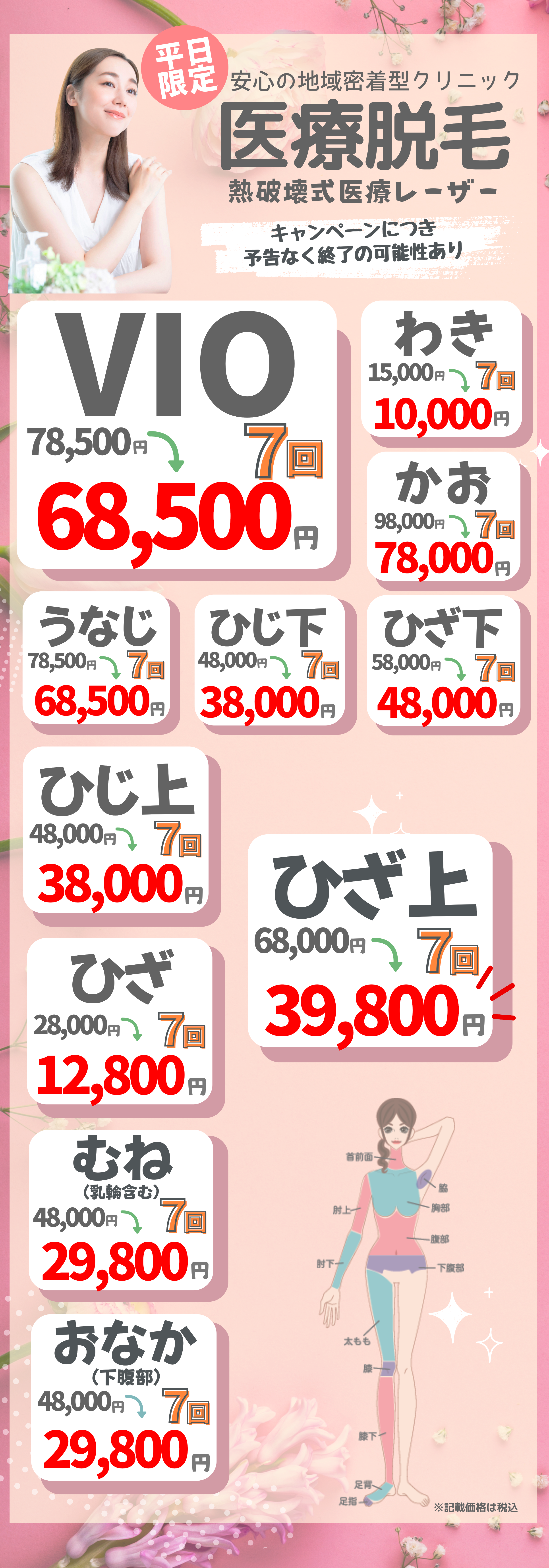 | ■ひざ下 | 18,000円 (19,800円税込) |